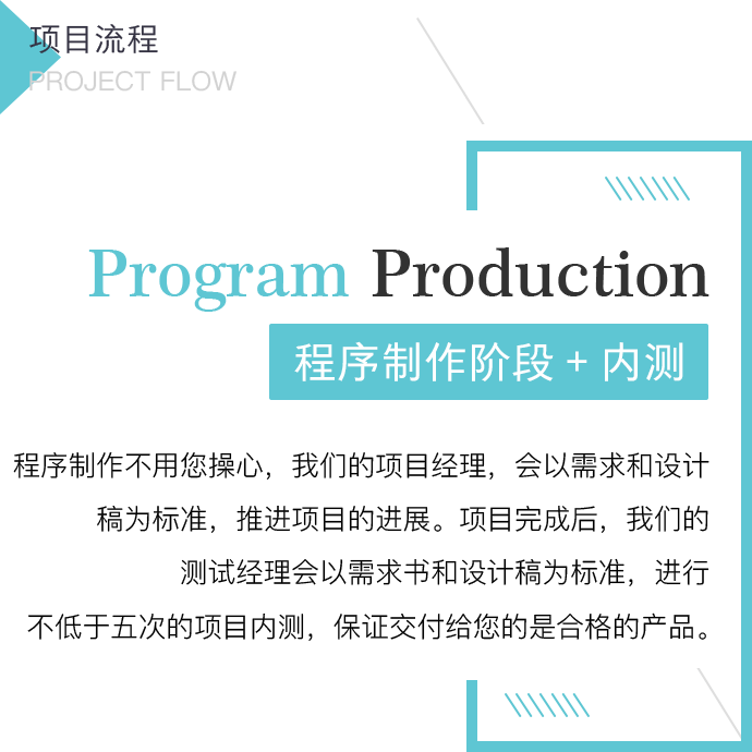 每一个阶段,我们会有不低于三次(最终成品不低于五次)的内测,以保障交付给您验收的,是我们测试完成的作品。